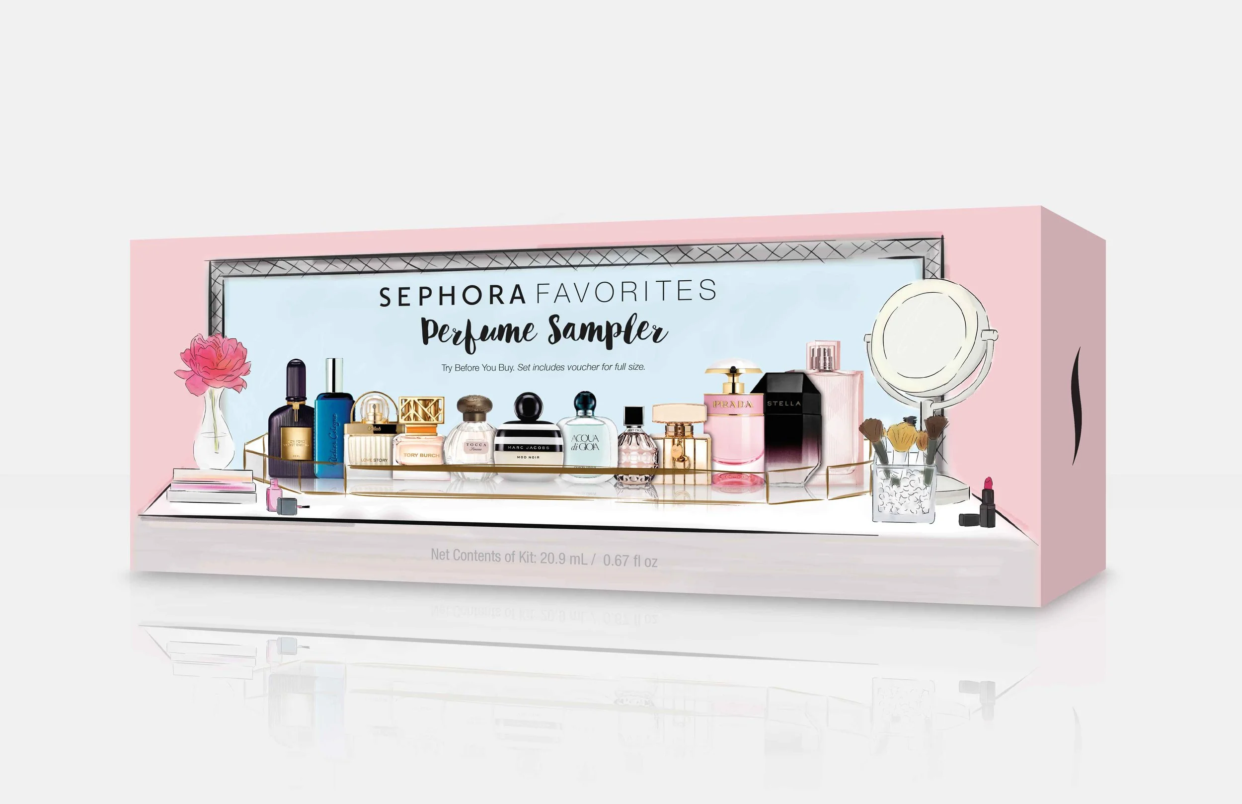 A range of package designs for Sephora Favorites. The approach involved thorough research to pinpoint important trends, using various materials and finishes to craft a distinctive and effective brand experience that conveys a compelling narrative and distinguishes itself.